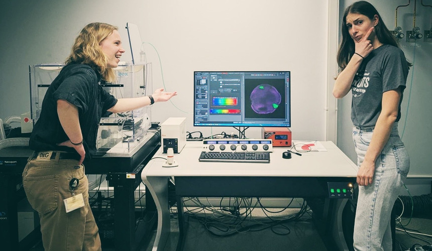Simona Katrin Galun, PhD student from the Breznik team at NIB, University of Ljubljana, had a productive stay at ACAM this month. As part of a NET4BRAIN COST funded short-term scientific mission, we shared our expertise on how to visualize the complex 3D structure of organoids. We illustrated and applied our strategies for optimal sample preparation (staining and clearing) and explained how to perform standardized organoid imaging using our digital scanned laser light sheet microscope. It was also just fun....